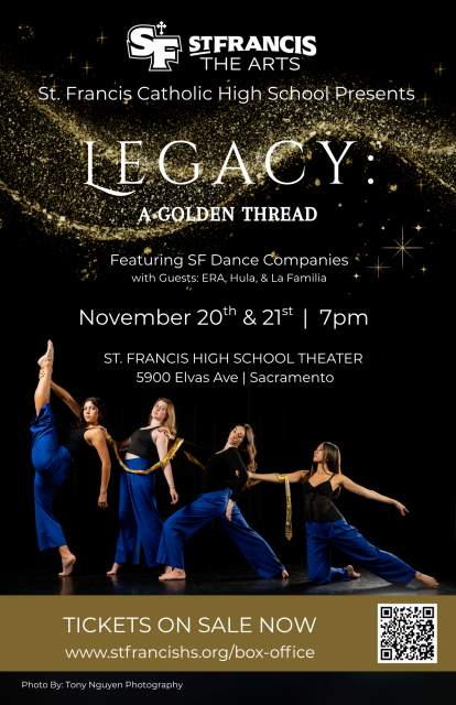 In this production, students revitalize past SFHS dances and productions. This represents the idea of the “Golden Thread” that ties the SFHS arts alumna and teachers together. Along with performances from SF Dance Company, Apprentice Dance Company, Hula, and Era, audiences will experience surprise cameos from past artists and teachers from St. Francis’ Performing Arts Department.